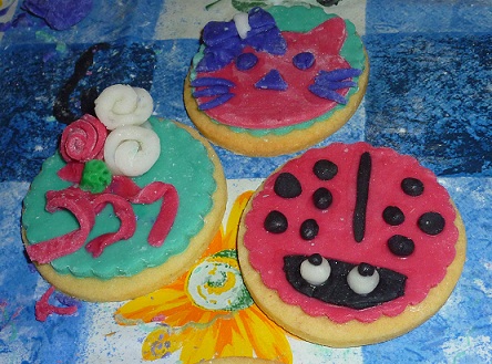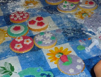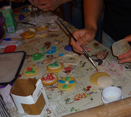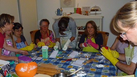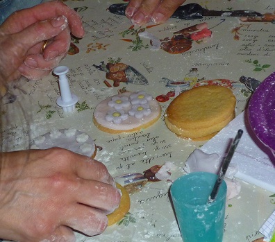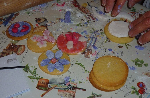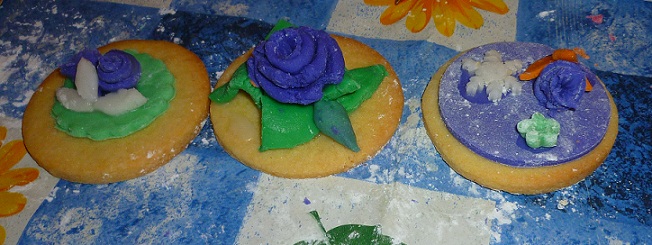 Ieri sera hoi fatto una cosa che mi gingillava da un pò e che ho finalmente avuto l’occasione di fare, una cosa che tra l’altro mi ha messo in costante agitazione tutta la scorsa settimana, considerato il fatto che era la mia prima volta e che il margine d’errore mi intimoriva non poco… Sarò all’altezza? sarò capace? Mi impappinero? Riuscirò a trasmettere le mie conoscenze, frutto di un intero anno di studio, senza essere pesante, pedante o saccente? O peggio ancora annoiante???? Bè, sembrerebbe che fosse andata bene e che le alunne fossero soddisfatte, mi hanno già chiesto il numero 2, evviva!!!!!. Se vi state chiedendo cosa ho fatto, ho fatto un corso come Maestra sulla decorazione dei biscotti con la pasta di zucchero, replicando più o meno quello cui avevo partecipato io. Il lavoro a monte è stato impegnativo, ho passato ogni attimo libero di mercoledì, giovedì e venerdì a fare 100 frolle rotonde, gli esempi di decorazione e 2 kg di pdz neutra.