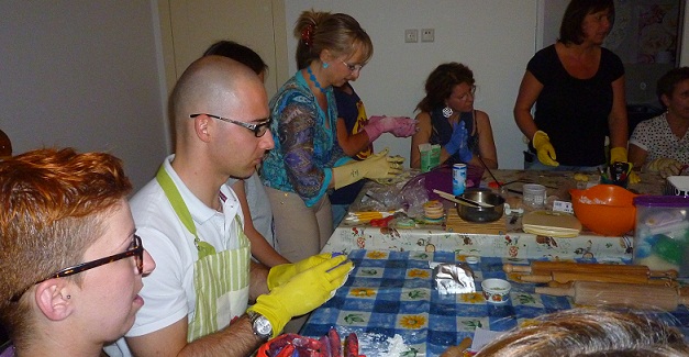 Mi è piaciuto, le allieve sono state strepitose, creative e piene di tutti quei perchè che rendono l’insegnamento interessante. Inoltre, rispetto al corso che ho fatto io, dove mi ero limitata a rifare quel che avevo visto, qui ognuna di loro ha dato libero sfogo alla propria creatività e gusto color. Una grande gratificazione…
