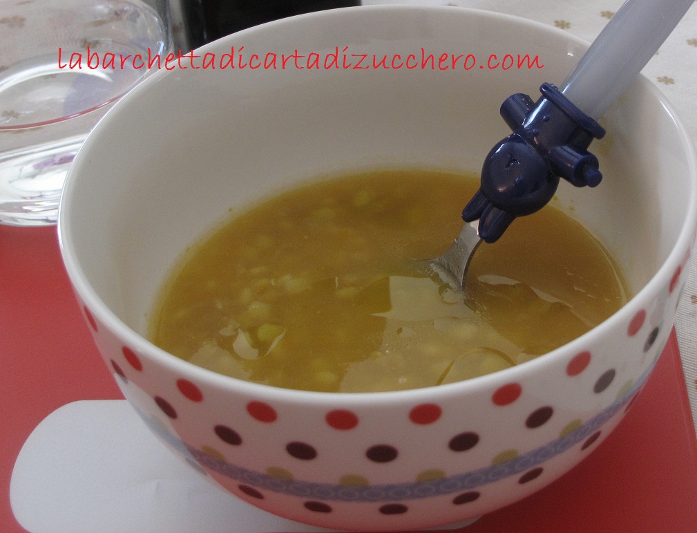 Questa è una minestrina che io faccio spesso a casa perchè è di una semplicità quasi imbarazzante e nello stesso tempo piace proprio a tutti, per cui anche se è nata per Marco in realtà ce la pappiamo tutti e con gran gusto.