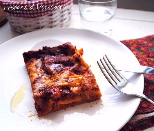 Cos’è? Basta con stà Tessa kiros?…. ma non ci pensate neanche! Io mi affeziono! quando ho un libro eccellente, con le ricette che vengono sempre, semplici, per tutti i giorni e con un filo di phatos che attraversa le pagine, ve lo dovete sorbire. A lungo… Quindi oggi abbiamo le “lasagne al Pomodoro”, che non sono nient’altro che una versione alleggerita della lasagna al ragù, ma buona…. aromatica e sfiziosa. Lasagna di fine estate insomma, col sugo fatto usando le ultimissime foglioline del basilico che stà sul balcone
