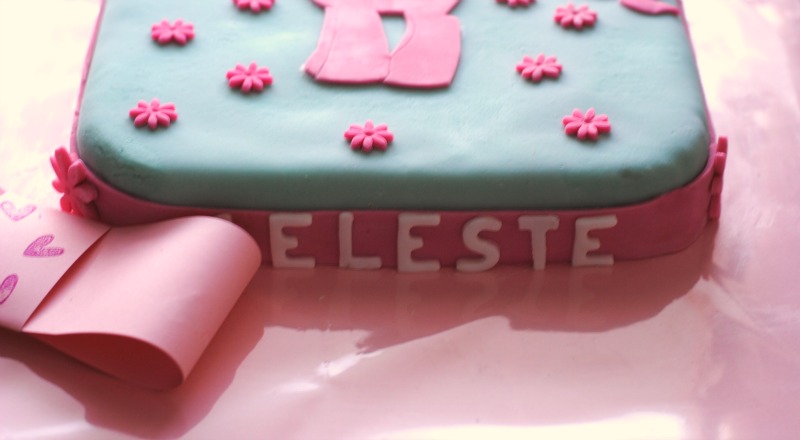 Non pensate subito a un commento sessista perché vi giuro che non lo è e non vuole esserlo, è solo che io ho 2 figli maschi, 1 marito maschio e 1 gatto che credevo fosse femmina e invece… alla prima visita dal veterinario è risultato essere maschio anche quello. Mi manca il rosa e l’universo femminile, per abiti e iconografia, è molto più ricco di quello maschile. Quindi quando mi capita, come questa settimana, che una deliziosa bimba di 6 anni con due occhioni grandissimi e blu, mi chieda una torta come questa per il suo compleanno, io esulto. E mi diverto a farla come una matta. Quindi, tanti auguri Celeste!!!