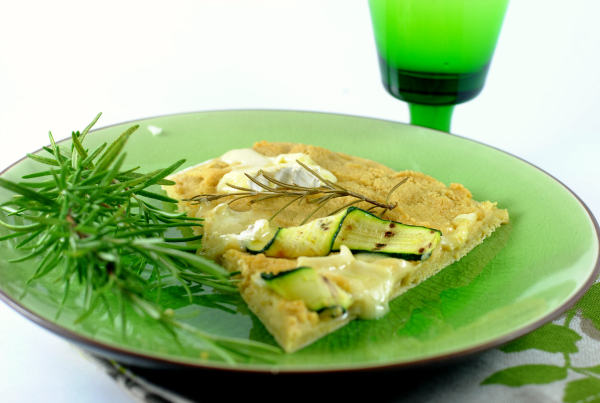 - Infornate per una decina di minuti, ritirate fuori la base e coprite con le zucchine grigliate , un rametto di rosmarino e le fettine di brie, reinfornate per altri 5/8 minuti, fino a che il formaggio sia sciolto.