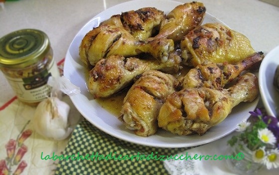 Incidete il pollo con tagli obliqui orizzontali e spalmatelo con il contenuto del vasetto di bruschetta di ciliegino e carciofi Agromonte, lasciatelo marinare così per un oretta.