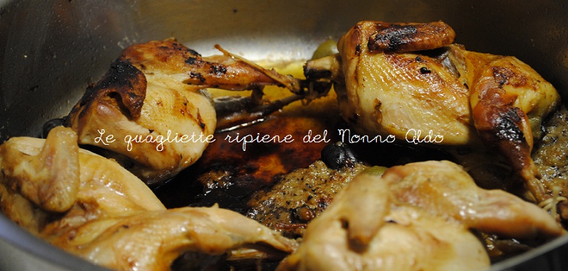 Che spettacolo!!! Il nonno e le quagliette 🙂 gustosissimo il tuo ripieno e hai ragione delle qualgie si leccano anche gli ossicini, baciiii