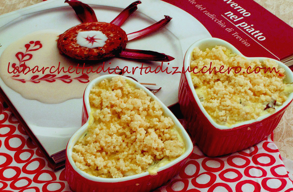 sformatini di ricotta e radicchio con fondi croccanti di noci macadamia