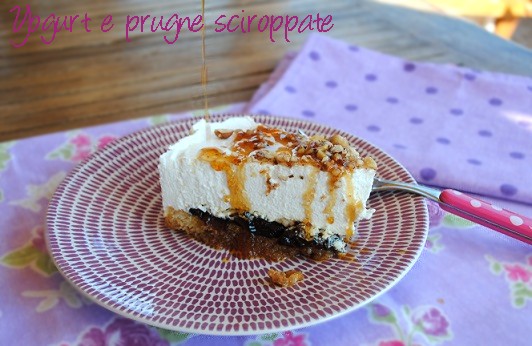 Torta allo yogurt con prugne sciroppate e granella di nocciole allo sciroppo