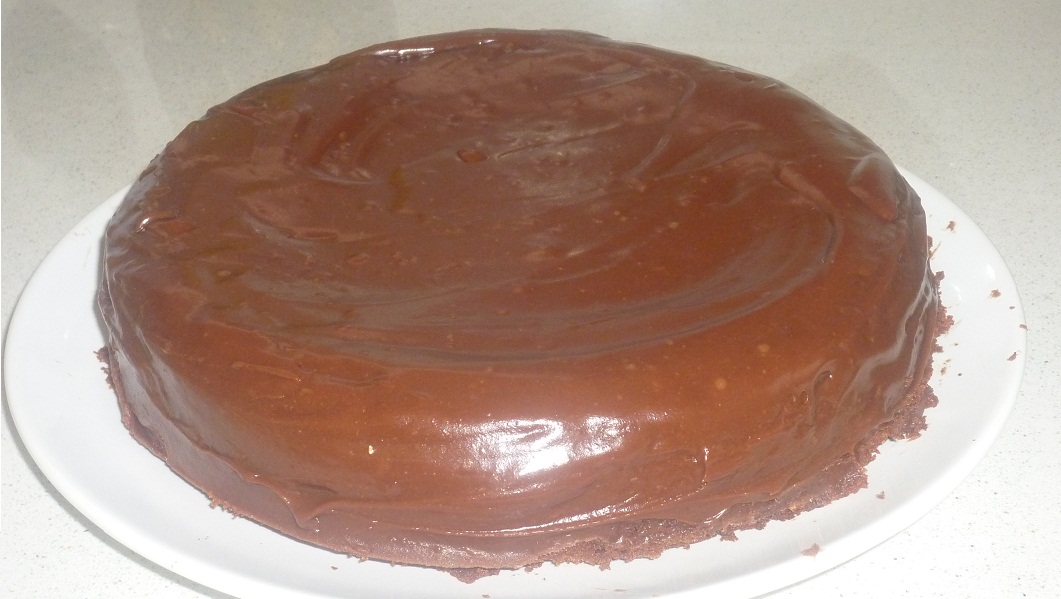 Nigella lo dava per due stampi da 20, io l’ho fatto in unico stampo da 24, basta avere la cura di lasciarlo nel forno un pò di più (ma non troppo perchè lo volevo con l’interno un pò cremoso, di modo da glassarlo solo sopra).