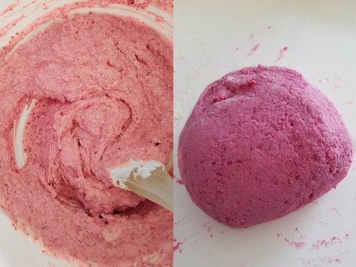 Unite in una ciotola la ricotta, lo scarto dell'estrazione (o centrifuga) della barbabietola, l'uovo e la farina e impastate fino a ottenere un composto che sta insieme ma ancora un po' appiccicoso, fate riposare.