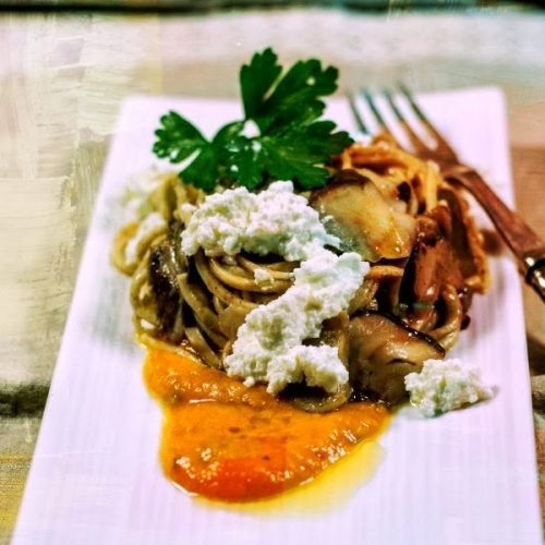 Cuocete le tagliatelline in abbondante acqua salata, scolatele e saltatele a fuoco vivace nella padella con i porcini e un mestolino o due di acqua di cottura, ricordate che la pasta fresca assorbe molti liquidi quindi in condimento la dovete lasciare bella umida.